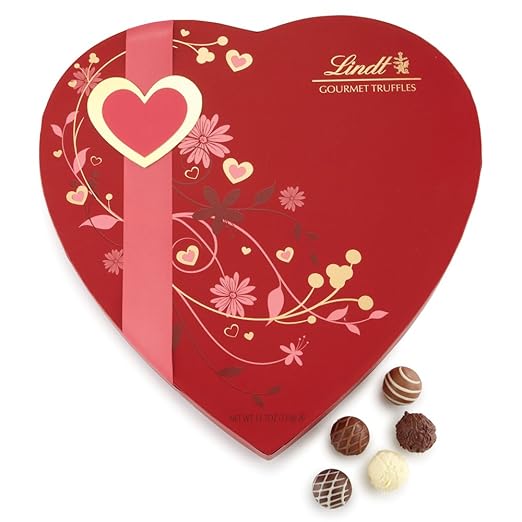 This heart shaped box containing delicious, decorated chocolate truffles is a perfect gift for Valentine's day.